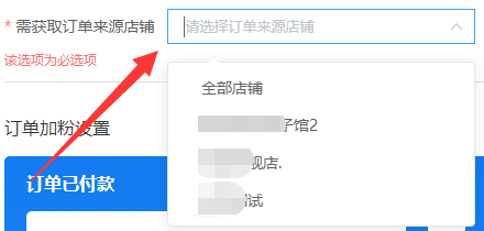b、選擇需要加粉的電商店鋪,這些店鋪有新訂單時,會自動獲取新訂單的手機號,這個手機號會根據設置的任務自動執行加好友注:如果導入的手機號在系統中已存在,將自動過濾不在添加