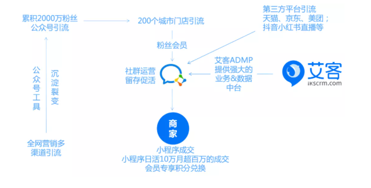 例如艾客的老牌客戶,曾受疫情影響倒閉了400多家門店,僅存50+在正常營業,但就這僅存10%的門店,在業績斷崖式下滑的7天后,依托私域生態,迅速收攬了6.5萬名客戶,營業額急速回轉,甚至達到疫情前的140%。