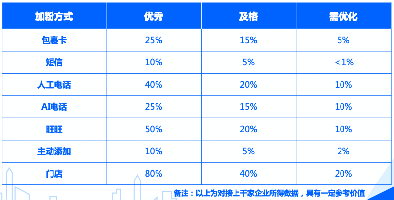 私域目前已經成為消費品牌的重要規劃之一,如何將品牌的流量更有效地變成品牌自有流量,一直是品牌需要面對的挑戰。目前以電商場景為例,常用的加粉方式是通過AI外呼、短信、包裹卡、主動添加、在線引導等實現。但是當下私域加粉率在逐漸遞減。數據顯示,2019年加粉通過率保持在20-30%左右,而到了2020年下降到了6-7%,2021年再度降至2-3%。為何方法這么多,加粉這件事卻這么難呢?