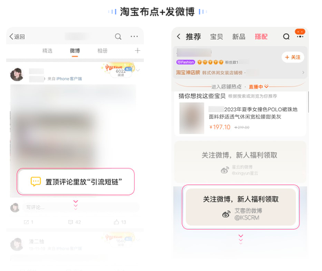 可以在微博的置頂評論里放“引流鏈接”,同時可以在淘寶底部放微博名稱,互相引流。