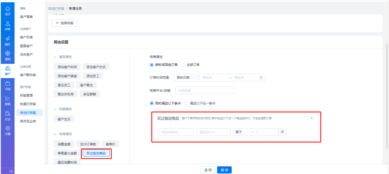 個(gè)性化服務(wù):了解客戶的喜好和購買歷史,通過定制化的推薦或優(yōu)惠券服務(wù)來滿足客戶的個(gè)性化需求。可以結(jié)合艾客系統(tǒng)的自動(dòng)打標(biāo)簽功能,根據(jù)購買歷史進(jìn)行打標(biāo)簽,從而找到目標(biāo)客戶