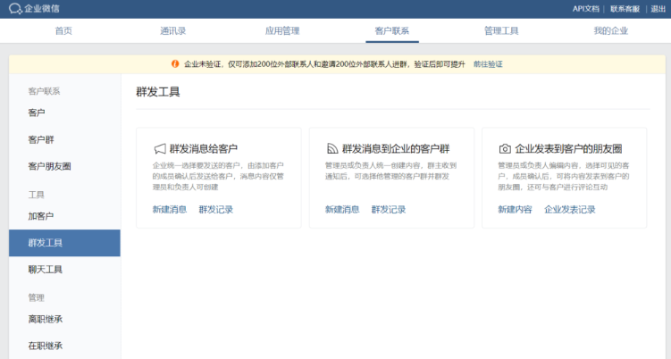 由企業(yè)編輯好的朋友圈內(nèi)容,需要企業(yè)微信管理員在企業(yè)微信管理后臺,通過“客戶聯(lián)系——群發(fā)工具——企業(yè)發(fā)表到客戶的朋友圈”,來進(jìn)行新建內(nèi)容,內(nèi)容可以包含文字、圖片、視頻、網(wǎng)頁等形式,內(nèi)容建完之后就可以分配給企業(yè)成員進(jìn)行發(fā)送。當(dāng)企業(yè)成員接受到發(fā)圈任務(wù)時,直接點擊就能發(fā)表到自己的企業(yè)微信朋友圈。