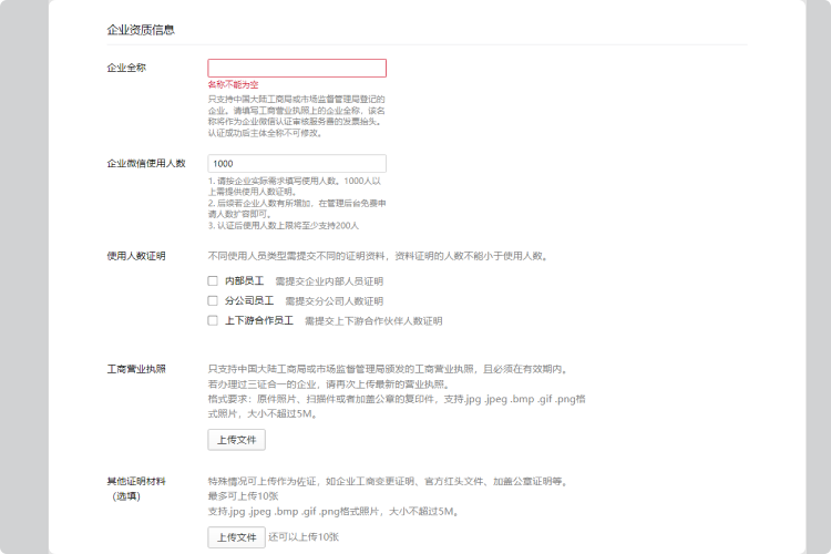 需要注意的是,當企業人數填寫到1000人以上,就需要提供人數證明,人數在1000人以下,則不需要提供證明。