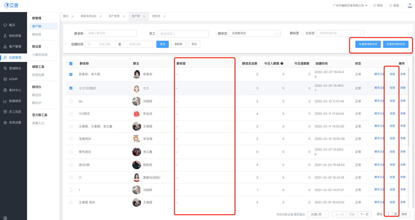 在給客戶群打標(biāo)簽方面,可以選擇給單個(gè)客戶群打標(biāo)簽,也可以選擇批量給群打標(biāo)簽。