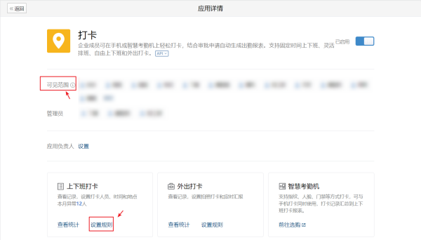 企業員工想要使用企業微信來進行考勤打卡之前,首先需要企業微信管理員登錄企業微信管理后臺,在“應用管理”——“應用”——“打卡”,中把打卡功能啟用,之后設置需要打卡考勤的企業員工以及管理層,再設置對應規則即可。
