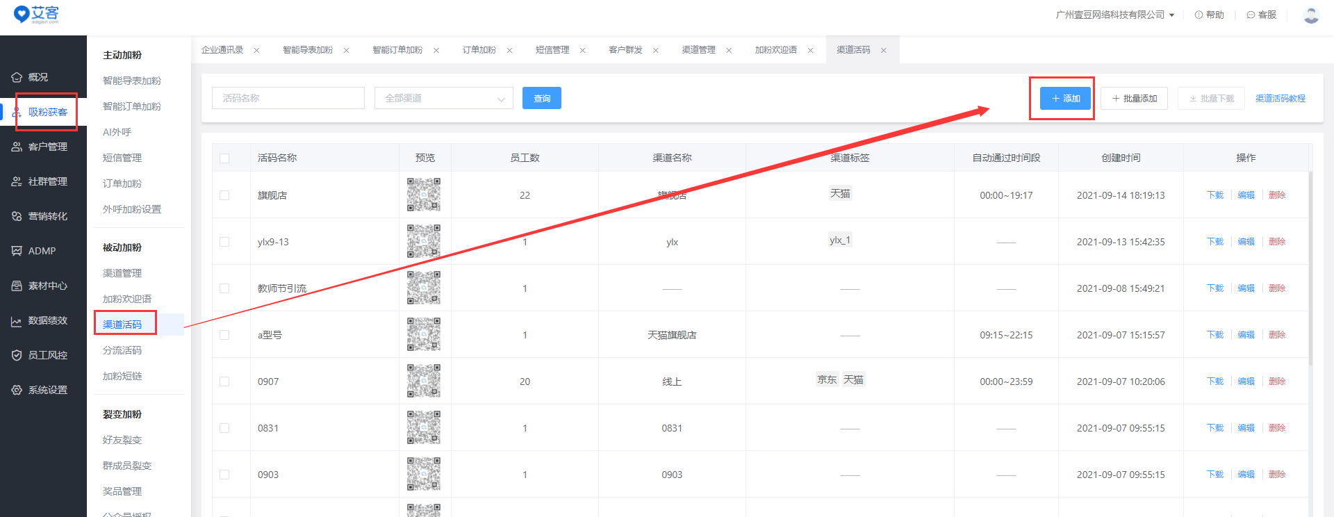 我們對企業微信進行廣告投放時,我們不知道具體有多少客戶是通過二維碼添加了我們的企業,也不知道引流效果如何。想要知道這些數據,小編推薦大家使用艾客SCRM系統的渠道活碼功能。