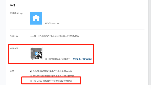 設置完成后,能讓企業員工掃描微信插件二維碼,掃碼后就能在微信上接收到企業微信的群聊、單聊和提醒通知消息。但是這個二維碼只有7天的有效期,若掃碼沒有成功使用這個功能,可聯系管理員更新二維碼。