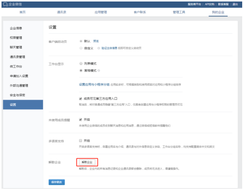 企業微信創建后創建人身份是不可解除的,僅支持解散或者注銷。如果是創建人身份解散企業要謹慎操作。一旦解散了企業,里面(關聯)的郵箱不能使用,成員的消息/資料/使用記錄、企業認證資質也會消失,關于企業的所有數據都會被清除。對應綁定的騰訊企業郵的郵箱也會被刪除,郵箱里面的資料也會被清除,請謹慎操作。