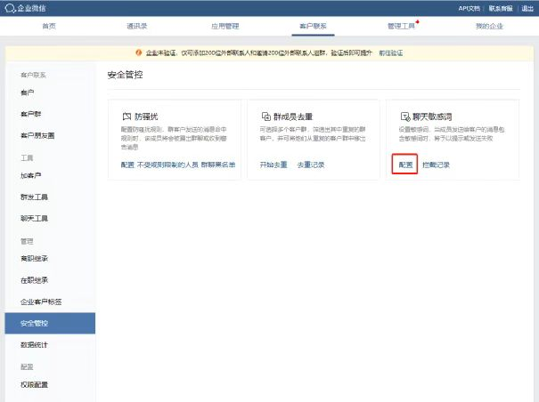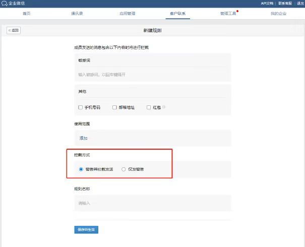 企業(yè)能通過企業(yè)微信后臺(tái)設(shè)置,對(duì)敏感詞進(jìn)行限制發(fā)送,禁止員工私拉客戶的行為。