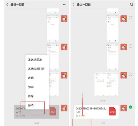 如果要把企業(yè)微信文件轉(zhuǎn)給個(gè)人微信,在企業(yè)微信手機(jī)端的聊天窗口,我們需要長(zhǎng)按要轉(zhuǎn)發(fā)的文件,彈出一個(gè)窗口,選中窗口中的【多選】,再點(diǎn)擊【轉(zhuǎn)發(fā)到微信】選項(xiàng)即可。