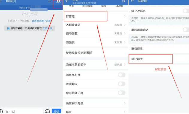 在企微群的消息頁面,群主可以點擊【群管理】—【轉讓群主】,選擇接受成員就可以了,群主身份轉讓成功后,群內會有提示的。