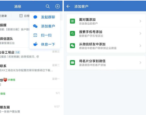 除了使用上述方法將微信客戶導入企業微信,還可以采用面對面和搜索手機號添加的方式來添加新客戶。
